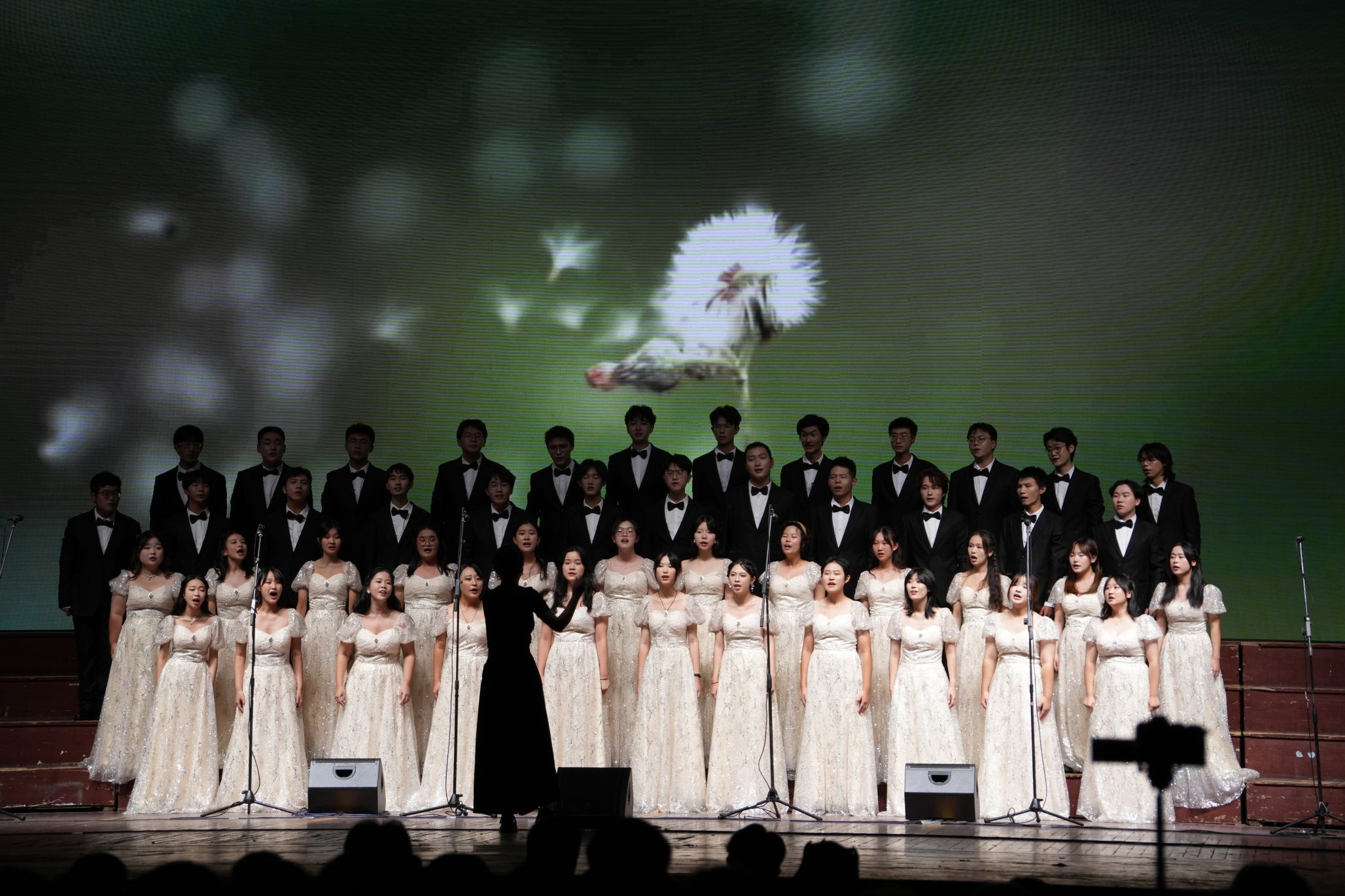 一声一韵,一音一律;一调一和,一升一降,来自各院系共20支队伍共同谱写秋的赞歌,和鸣秋的乐章,为我们献上了一场精彩的音乐盛典。本次合唱大赛中,我院纹理合唱团与基础医学院ATP合唱团组成的联队于第三位出场,献上了《在希望的田野上》与《蒲公英》两首曲目。